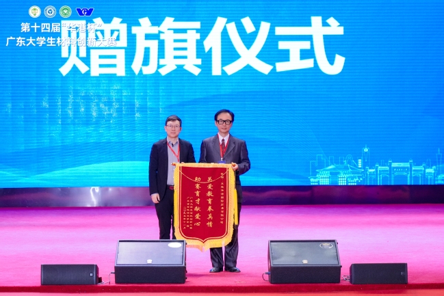 闭幕式上,我院党委书记魏剑波将大赛旗帜郑重交至下一届承办单位代表华南理工大学材料科学与工程学院教授殷素红手中。