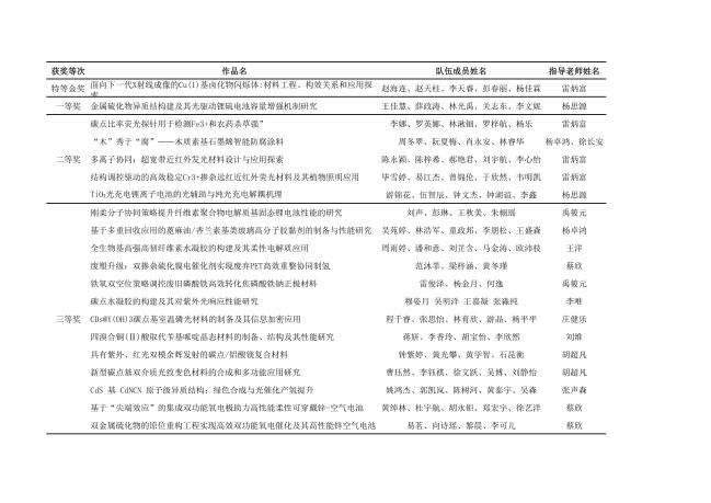 材料系教师作为指导老师参加材料创新大赛获奖名单